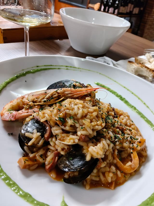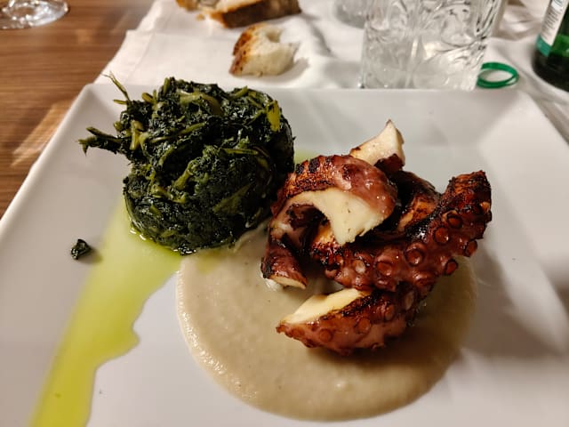 10/10Pleasant atmosphere, innovative and delicious cooking at still reasonable prices (although the coperto was €3 p.p., higher than usually). We particularly liked the Seafood risotto, Ravioloni, and Branzino fish. And many thanks to Federico for his excellent service with personal touch.