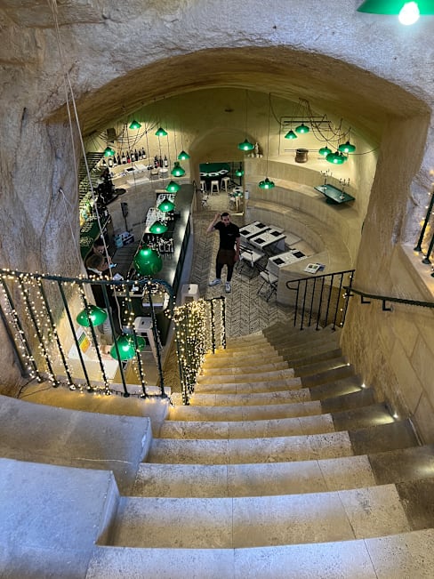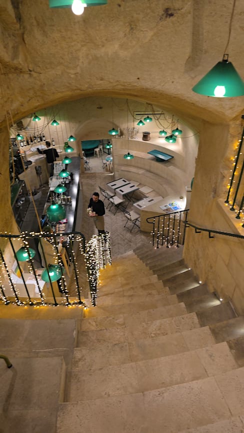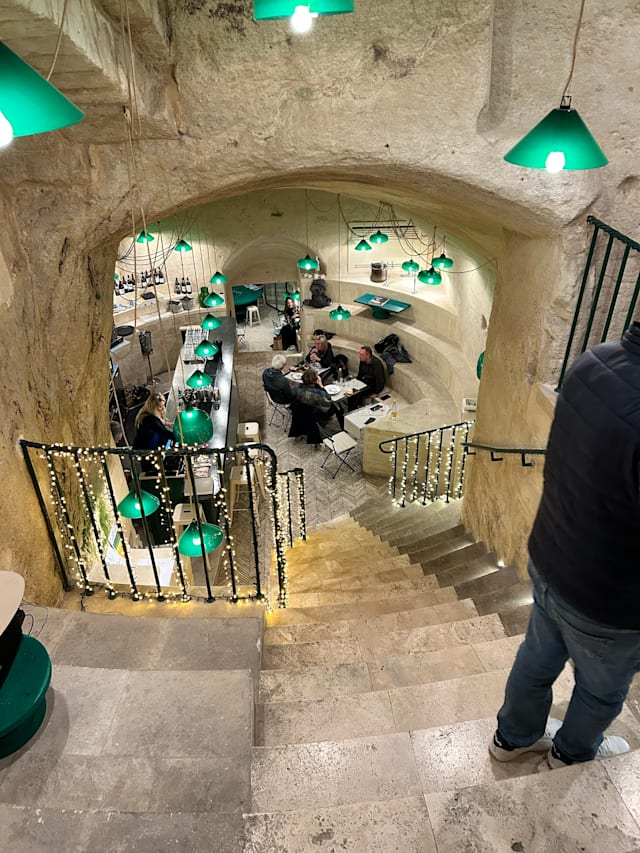 9/10A good restaurant in the heart of the Sassi. There are two main seating areas: a small one outside, at the entrance, where we sat and which we loved for its mild breeze and limited but still welcome view; and inside, which looks impressive but requires a steep walk down into an attractive cave-like setting (though it’s not dark, rather it’s well-lit with white walls and ceilings). Our meal was solidly above average and very reasonably priced, however not quite the outstanding cuisine which some reviews have cited. Attentive and gracious staff. Overall a good choice.