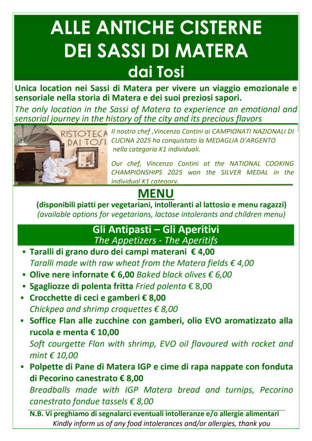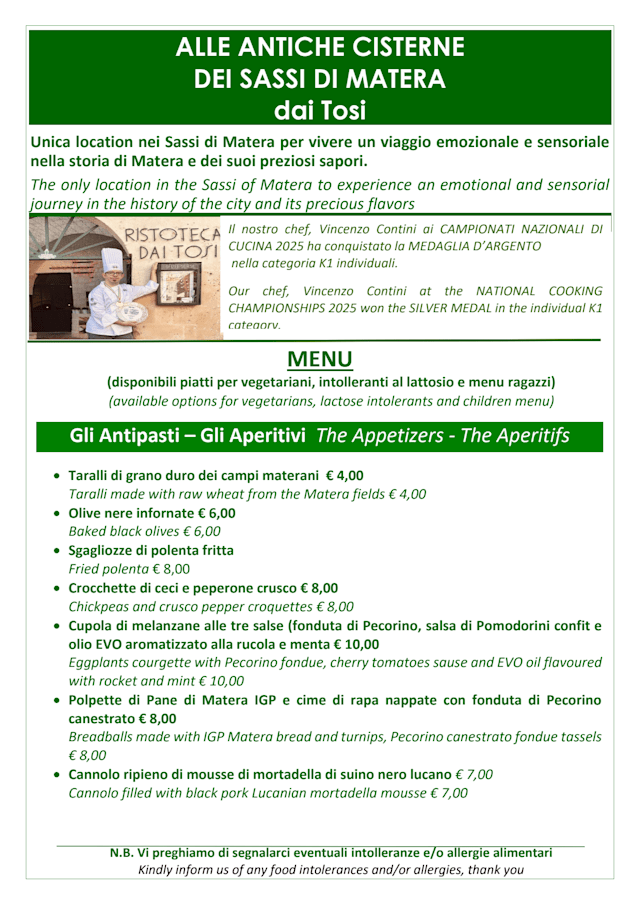 10/10If you are in Matera, the Rostoteca daí Tosi is a MUST … good food, good service and an great atmosphere.