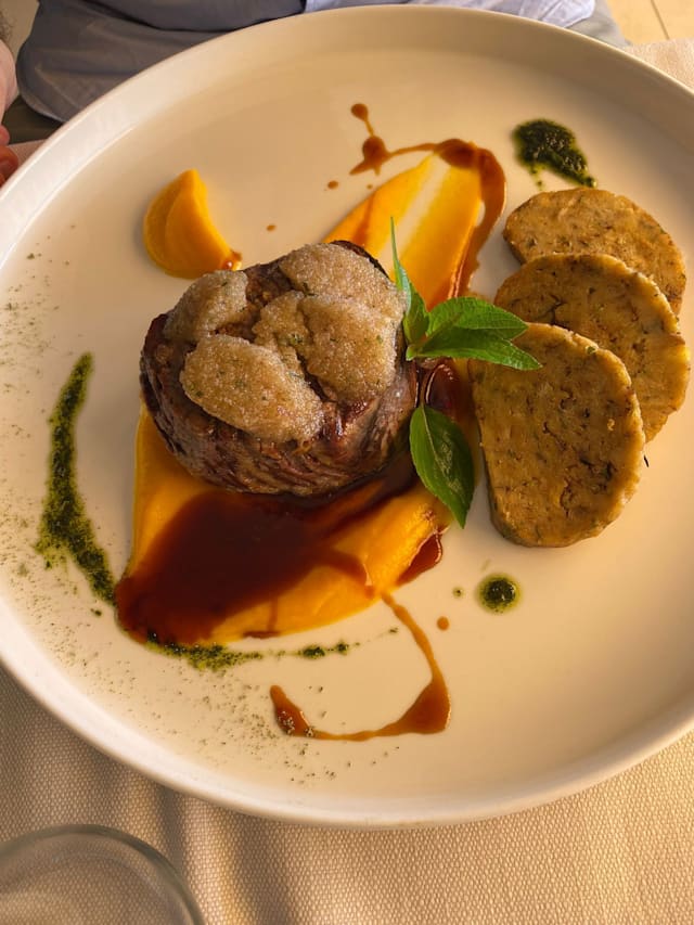 10/10Excellent restaurant . I liked the food and the service that was very kind and polite. The ambiance is nice and well decorated. When I ordered the first plate they asked me if I wanted the portion a little bigger and I found it perfect because I could not eat first and second menu. We had pasta with Truffles. Meat and Raviolli di Cervo. Delicious! I really recommend this place. Nice experience in Italy .