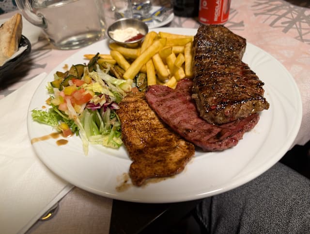 9.5/10Food was served in good portions and prepared with nice flavour. I had the surf and turf and the meat was cooked perfectly to Medium, nice and pink but not too pink