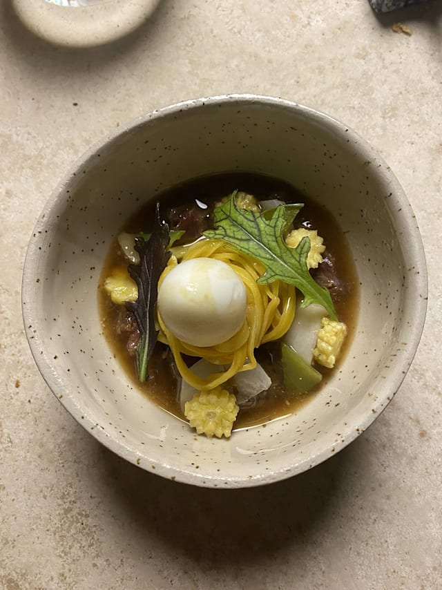 Petto di manzo brasato con la bock scalogni e salsa ponzu