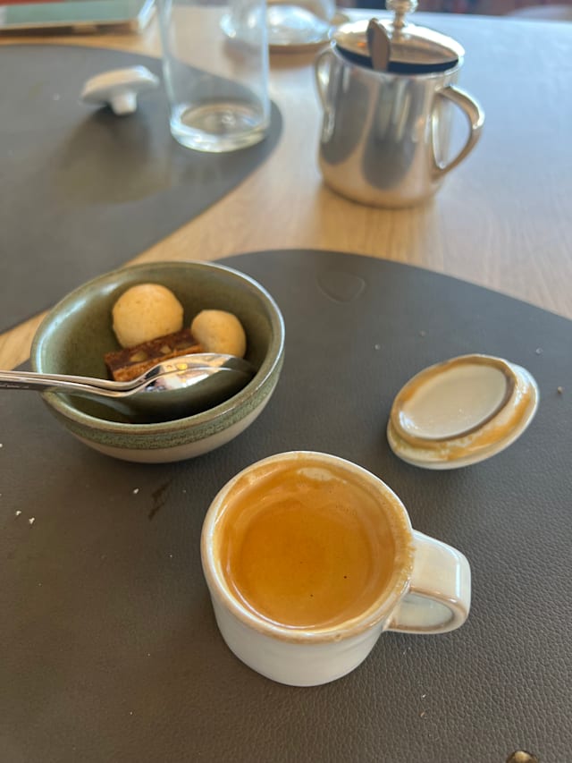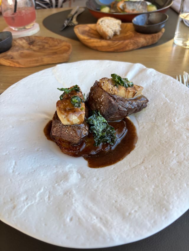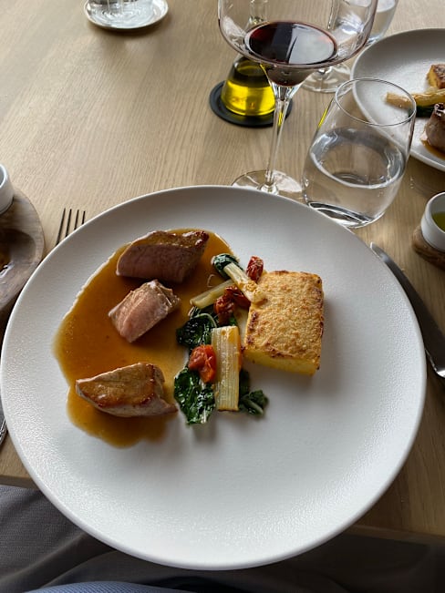 10/10We arrived for lunch on a beautiful day and were greeted warmly and sat near a window with gorgeous views. We ordered the menu vegetal, and were delighted with each course. Wine prices were marked up as everywhere but the harmony of the ingredients, the leisurely pace, the attentive and friendly servers all made this a very special meal. Looking around at what others ordered, every dish seemed to be a small work of art. Highly recommended, especially for vegetarians who struggle with meat-heavy menus.