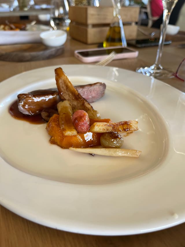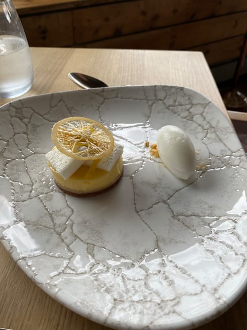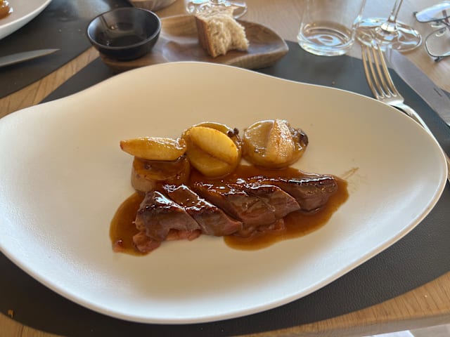 6.5/10This restaurant has a lovely ambience and view of the countryside. I’m going to take it that we just got them on a bad day but the service and food quality was not what we expected from a Michelin star establishment. It took 30 mins from arrival to our order being taken and the bread and olive oil was only brought after the ordering. There was no amouse-bouche so we were hungry when the entree arrived. It took time to clear plates, staff reached over us to serve us and glasses were not kept full. The veal was undercooked and the cheese selection (as an extra course) was two hard and two soft cheese pieces but the hard cheese pieces were the same. None of the dishes even remotely resembled those shown on the Le Fork page. The dessert was good but by this time we just wanted to leave.