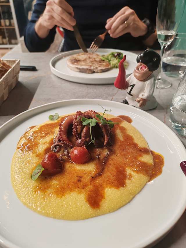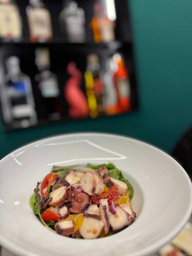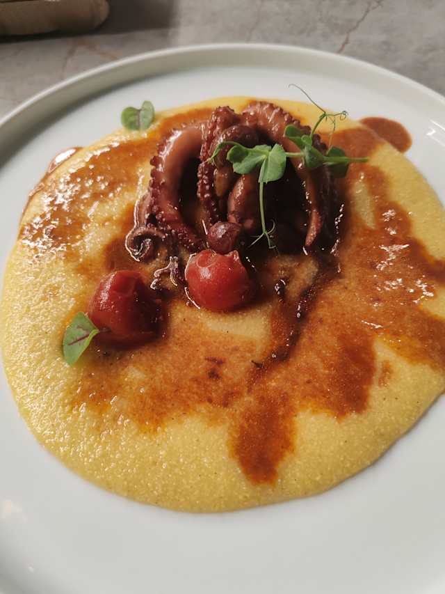 - Mezze maniche pastificio rummo polpo verace, olive capperi e olio piccante riduzione di prezzemolo