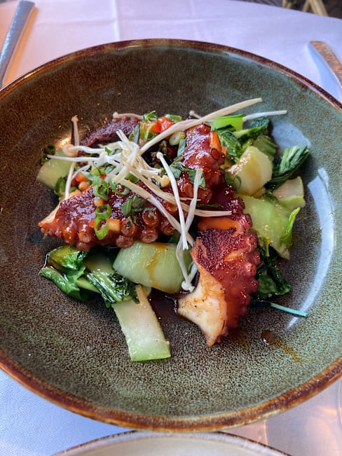 8/10This is a nicely situated restaurant on the Seine River. The decor is nice and we were seated just as the edge of the indoor part but since the sliding doors were removed to benefit the outdoor space, it felt like we were on the terrace as well. The rails and the glass along the péniche was dirty with spider webs and dusts so that’s not good. A good in-depth cleaning would up the ambiance. The staff were welcoming and attentive. The food was delicious however, I found a piece of rubber band mixed with the green veggies that accompanied the grilled octopus. I didn’t make a scene but I informed the server in the hopes that in turn he would inform the kitchen crew or at least the manager. He apologized. I wasn’t expecting it but to compensate, it could have been good if they offered free dessert. Just my opinion.