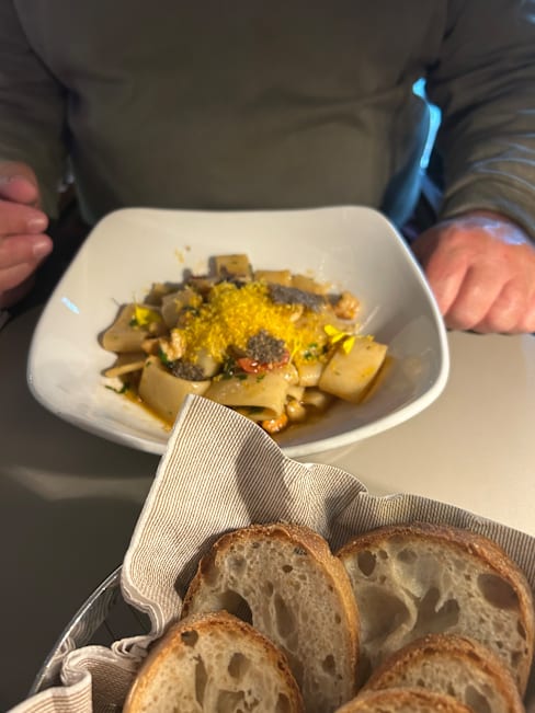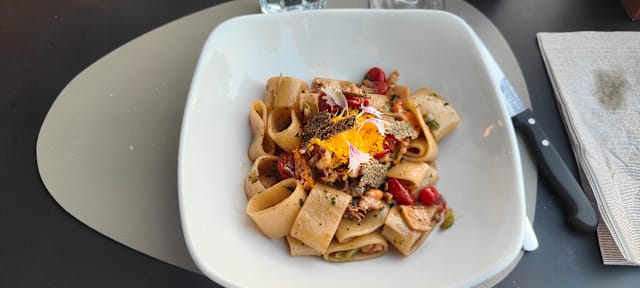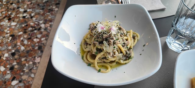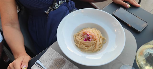 10/10We were warmly welcomed when we arrived and immediately shown to our table. The service was efficient, friendly and warm. We ordered the prosciutto snd burrata cheese and it was fresh and delicious. The tagliolini with black squid ink and cuttlefish was good and cooked al dente. We ordered cocktails my Moscow Mule was refreshing and delicious and served in a lovely copper cup with fresh mint and slices of ginger. My husband had the espresso martini and it was also good. Would highly recommend this place to friends and family It’s also very conveniently located across the street from the harbour and vaporetto station.