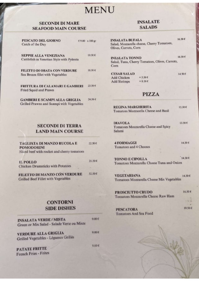 10/10was really beautiful place to food was amazing service was one of the best I had in Venice i recommend good good position in the in the sea