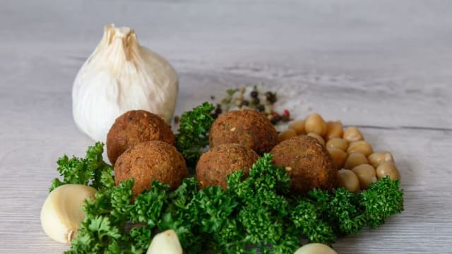 Pommes de terre ciboulette salade de pâtes à la feta riz basmati (sauce aigre douce, tomate maison ou nature) haricots verts à l'ail frites maison persillées purée de pomme de terre maison