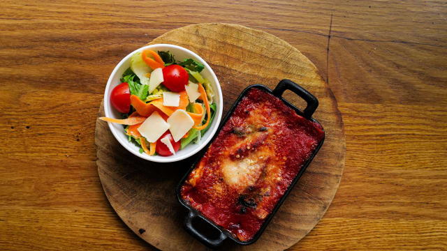 - Aubergines gratinées, mozzarella fior di latte, sauce tomate, parmesan DOP