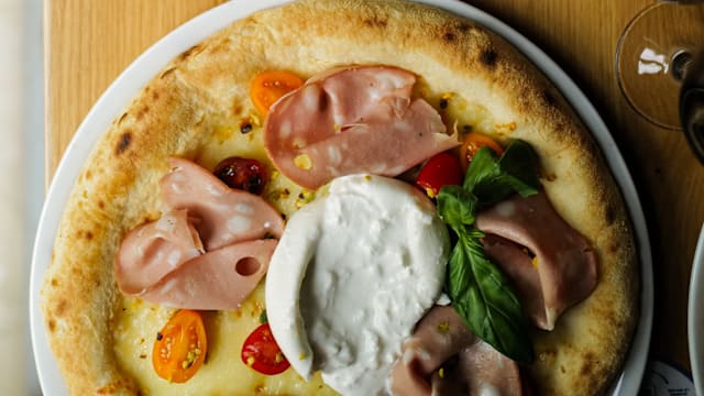 Sauce tomate, mozzarella fior di latte, champignons, jambon blanc