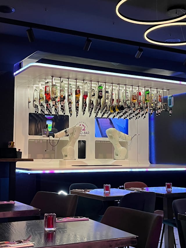9/10We went to Robo-bar to try the experience for the cocktails and as we didn't go with amy specific expectations we were quite satisfied with the options and the food. Very nice experience to see the robots preparing your drink and the food was quite good quality. Service was a bit too slow and the tablet to order your cocktails didn't work so you had to depend on the staff but besides that highly recommended experience