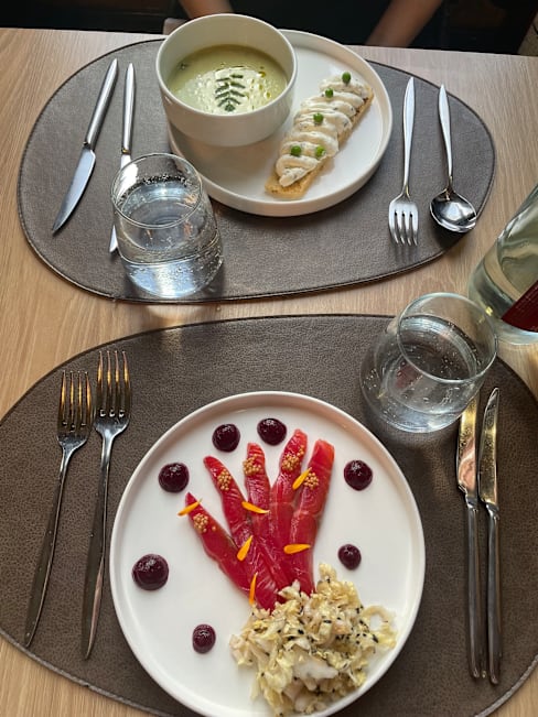 9.5/10The room is spectacular and just what we'd hoped. We walked from our hotel in the centre of the old town (an easy 30 mins). It's not cheap but we'll worth it. Delicious gravalax to start and then a perfect steak tartare for main. Highly recommended. Pleasant staff.