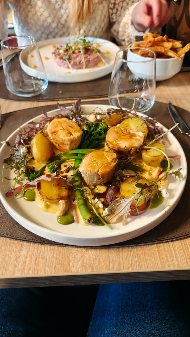 10/10We chose to come at the last possibility of the lunch reservation (13.30) so people left already a bit sooner. My mom has a hearing disability so it was much more quiet in the space! It was also a small room with not so many tables, perfect for us! The menu surprised me as I eat lactosefree as much as possible and the butternusquash was exquicit! Beside the ambience, the food was amazing and the service was so friendly as well. If you want a cosy atmosphere, book here!
