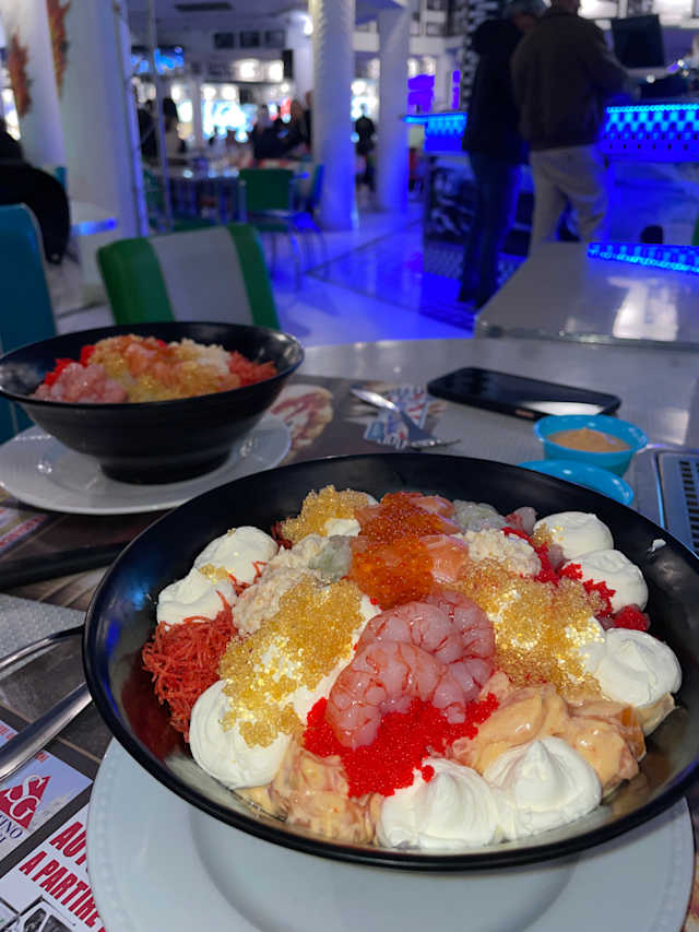 - Involtini di salmone, rucola, philadelphia, noci, insalata di mare, tonno e spada affumicato