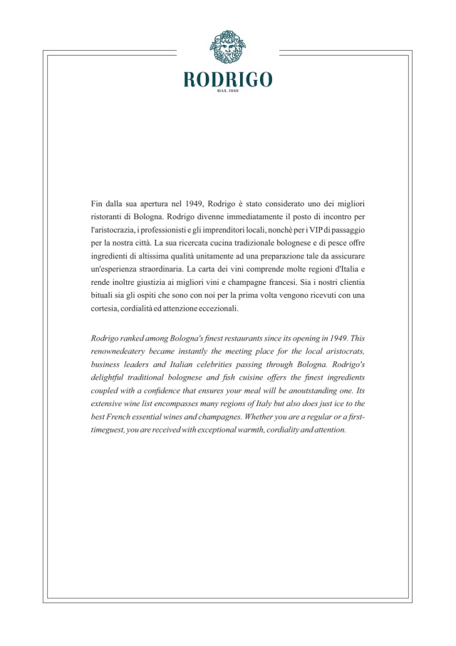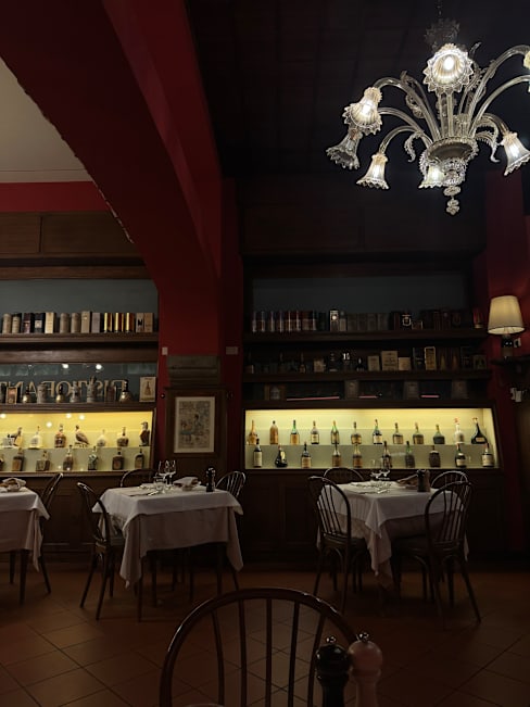 8/10Our booking was 7.30 and we arrived at 7.28 and had to wait on the street , not a good start . However the food was good although the portions were massive , it was a shame to leave so much . The menu was very extensive which is not always good but it seemed to work . The waiters were busy but attentive and did a good job . After a rather empty start the restaurant was finally full and bustling . Would return again if in Bologna .