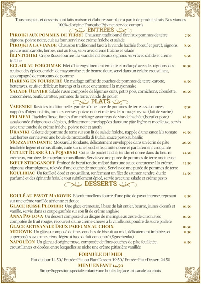 10/10We booked this restaurant as it was close to our hotel and we were intrigued by the Russian touch in the menu. The stuff was very welcoming and the service was great, the food very tasty and well served. We'll definitely come back on our return to Lyon!