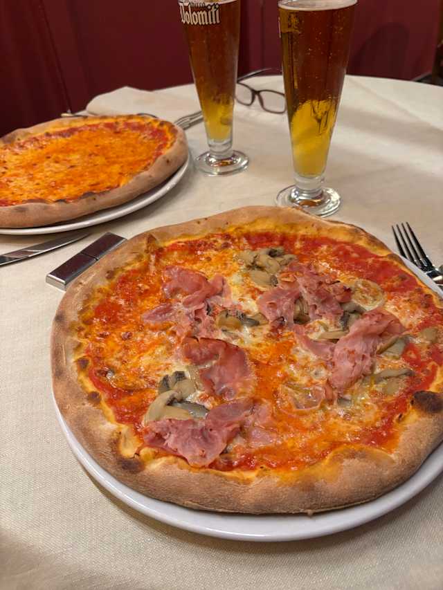 - Pomodoro, mozzarella, prosciutto cotto, funghi. Servite con gocce di olio extra vergine di oliva a crudo