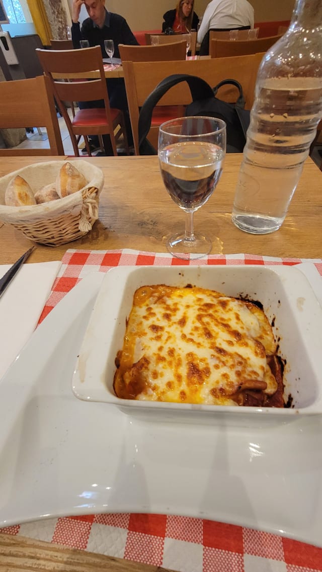 10/10Great food, very good ambiant music (70ies and 80 ies pop) but not too loud, and comfortable chairs and a non-obtrusive table that didn't get in the way to stretch out my (casted) leg ! Icing on the cake if you're on crutches, there is a parking garage opposite the restaurant. A dream !!