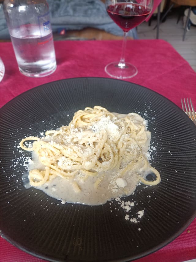5/10We had three dishes and they were all horrible. The mussels were rubbery. The Saltimbocca was dry, bland, and a quarter of it was sinew that was tough and chewy. The Amatriciana was undercooked as the pasta was hard and all stuck to my teeth, and there were only 3 thinly slices of guanciale (I am not exaggerating. There were so few that I counted on purpose). The restaurant has a 4.8/5 review on Google as of October 2025. I don’t know if the food was cooked poorly on purpose because I made the reservation at 50% off and the owner didn’t like that. The service (not by the owner) was excellent though.