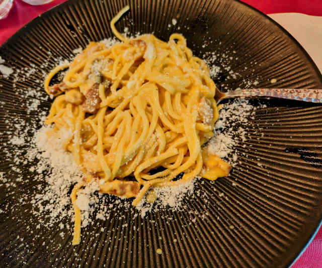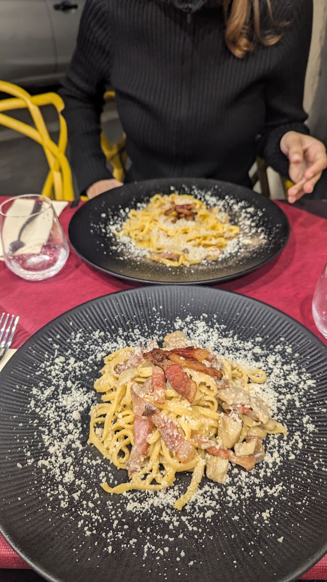 Thank you for sharing your experience, even if it didn't live up to your expectations. We apologize for the delay in the second course and for the quality of the carbonara, which clearly didn't meet our usual standards. Cooking and creaminess are aspects we care a lot about, and we will take your report as a starting point to improve our service and coordination in the kitchen. We would be happy to show you that this was an isolated incident. If you want to give us a second chance, we will do our best to pay you special attention. Best regards!