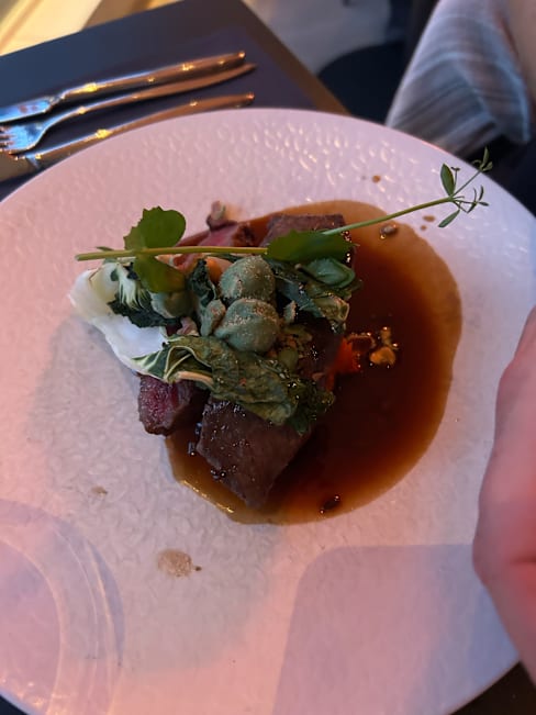 8.5/10We were welcomed really nice and received a very delicious muse. The steak was very delicious with a nice sauce. The bass was also good but missing a little bit of a killer sharp taste. Millefeuille as a desert was super good! It was my husband’s bday and they took care of everything perfectly.