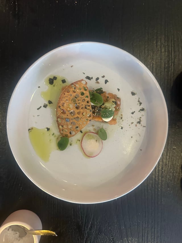 9.5/10We had the 4 course surprise menu with complimentary wine. Fantastic combination of tastes and great wine! Service was friendly and attentive.