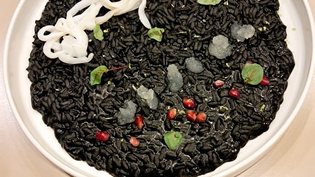 - Linguine all’astice con estratto di dragoncello, salicornia e crumble al nero di seppia