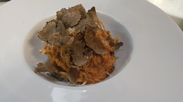- Fettuccine con ragù d’anatra, crumble alla paprika e nocciole, riduzione di arancia e marsala
