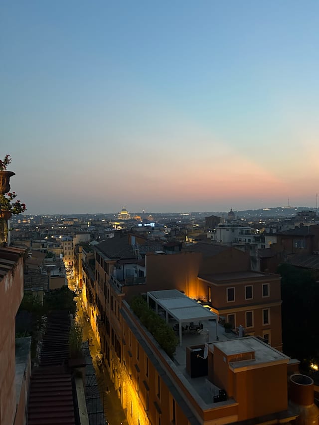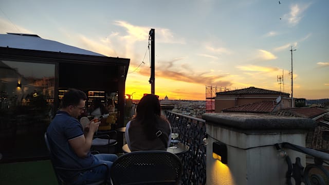 Dear Rebecca, Thank you so much for taking the time to share your wonderful experience at Spritzeria Barberini! We're thrilled to hear that you enjoyed our antipasti and drinks, it's fantastic that you discovered the magic of visiting during sunset. The view of Rome from our rooftop is truly something special at that time of day. We appreciate you recommending us to others, your kind words mean a lot to us. We look forward to welcoming you back soon! Best regards, Mattia Pira Guest Relations