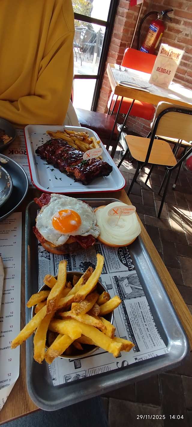 - Patty de 180gr de vacuno con bacon, queso cheddar y un huevo frito que mejora todo