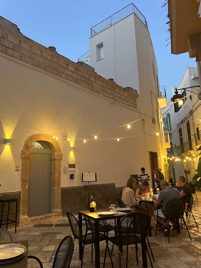 10/10Intimate space, good advice from the staff, service was attentive. The food was great, an awesome experience to cap off a week in Monopoli. A treat to visit the speakeasy for an after dinner drink