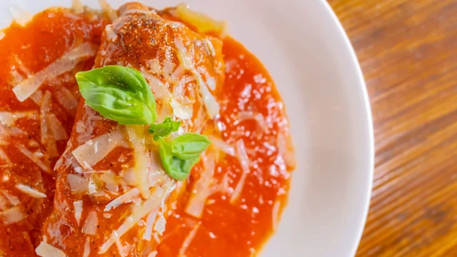 - Parmigiana con ragù di pesce (manzancolle, totano e alici)