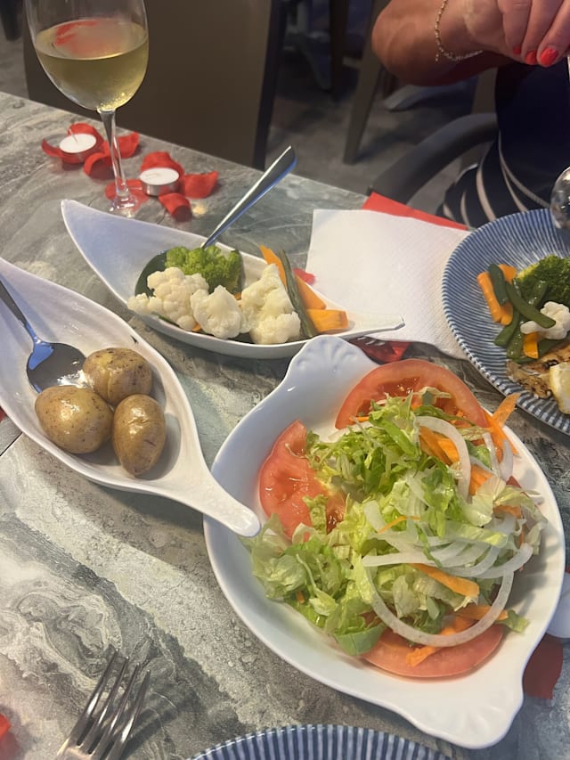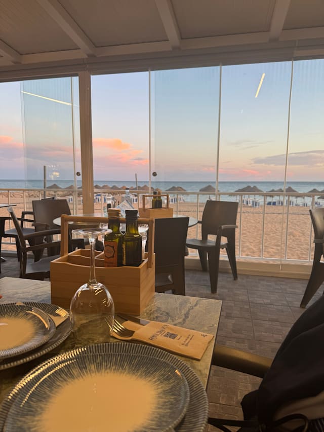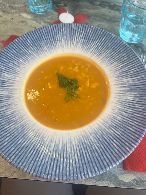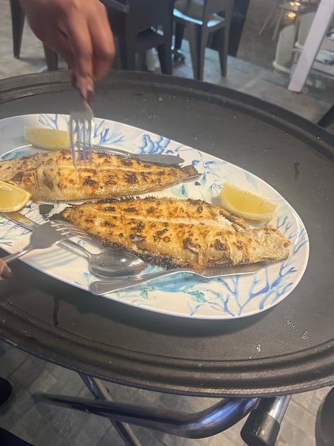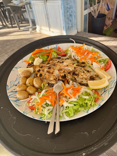 8/10We had a salmon salad which my son enjoyed and we got the sea bream which was beautifully cooked and the fish soup was absolutely delicious a definite must try. We had a table by the window and it was lovely looking out to the sea and beach and watching the sun set. Beautiful seating, delicious food and brilliant service.