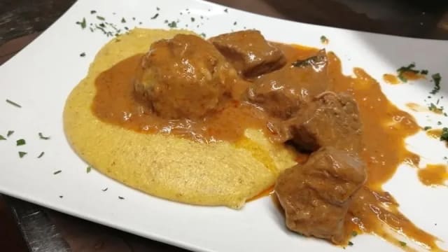 gnocchetto tipico con farina latte e uova condito con salsa al cervo.