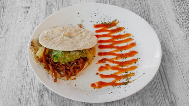 Taco de cochinillo desmenuzado,