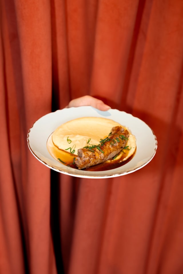 - Boudin noir, purée onctueuse, le tout gratiné au four pour une croûte légèrement dorée.