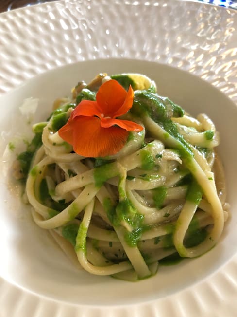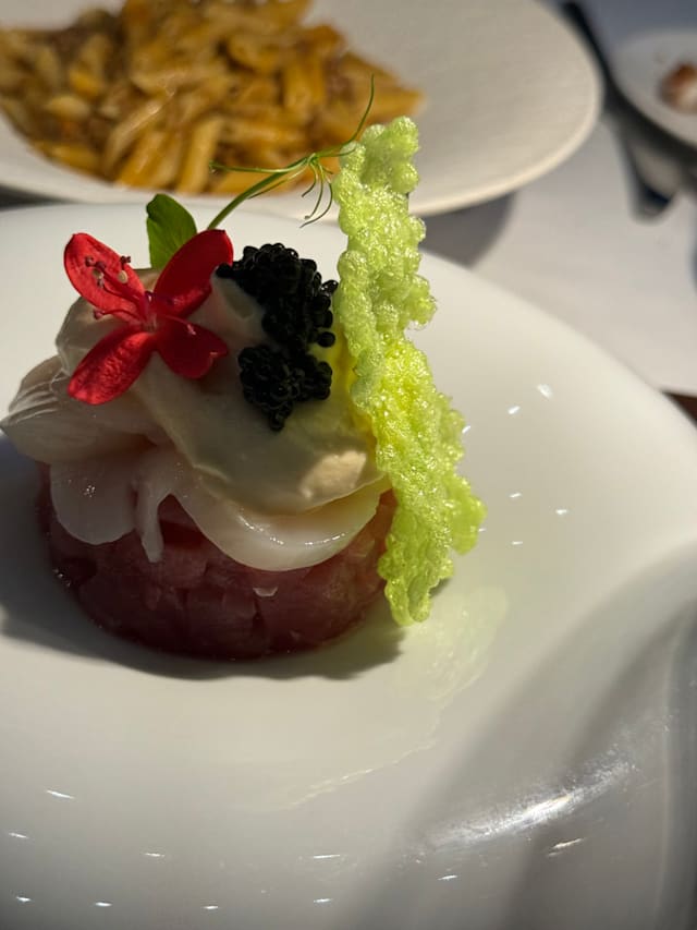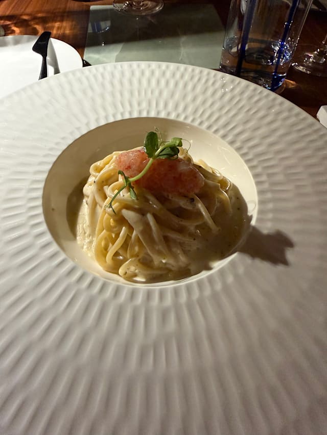10/10Our anniversary dinner- Starts off with the warm welcome to our table The server -forgot his name handsome with cool black glasses -gave us beautiful professional service The fish dishes we ordered were exceptional my husband and I split the lobster pasta 1st Our server recommended a great bottle of wine then we had a cheese course for dessert. We wanted to go back a second time in the same week, but they were booked. It’s a must try, the atmosphere is beautiful