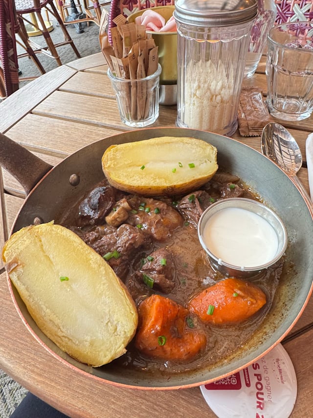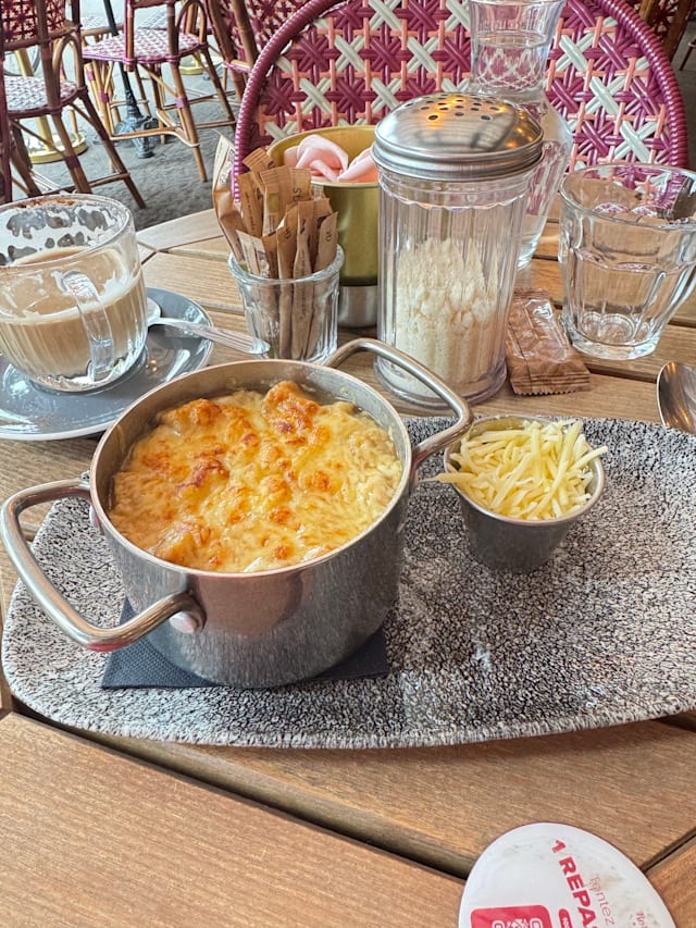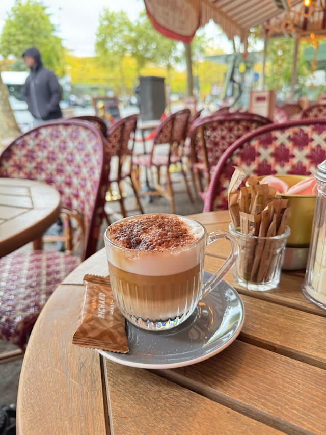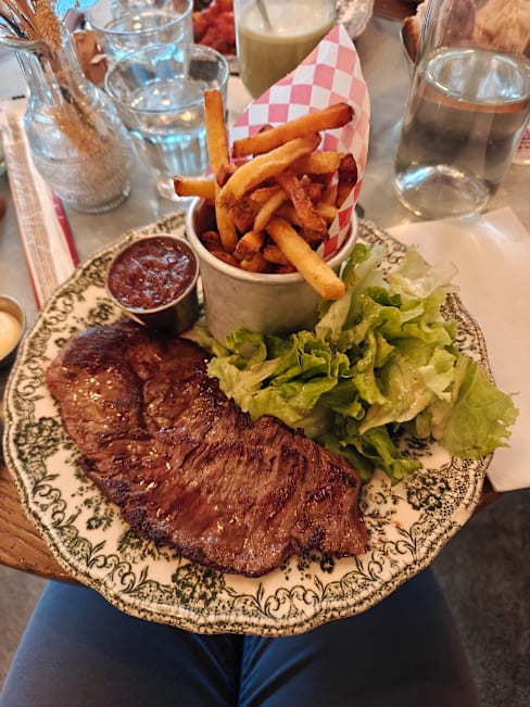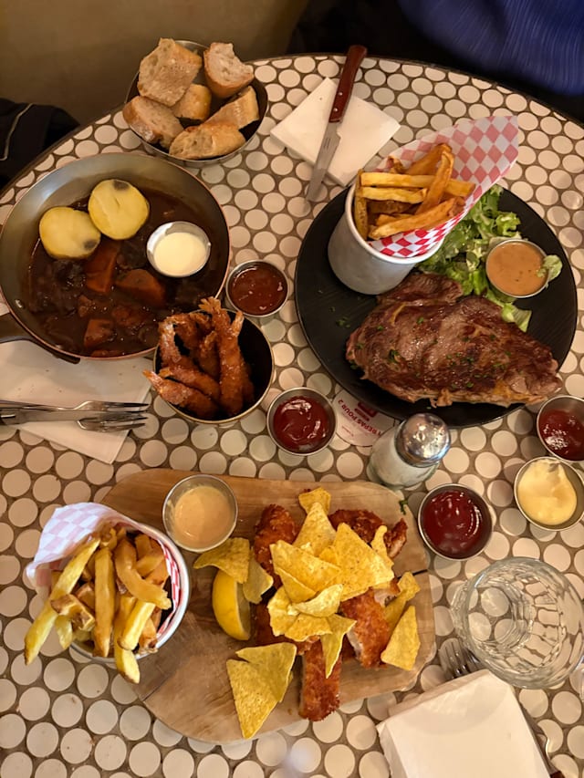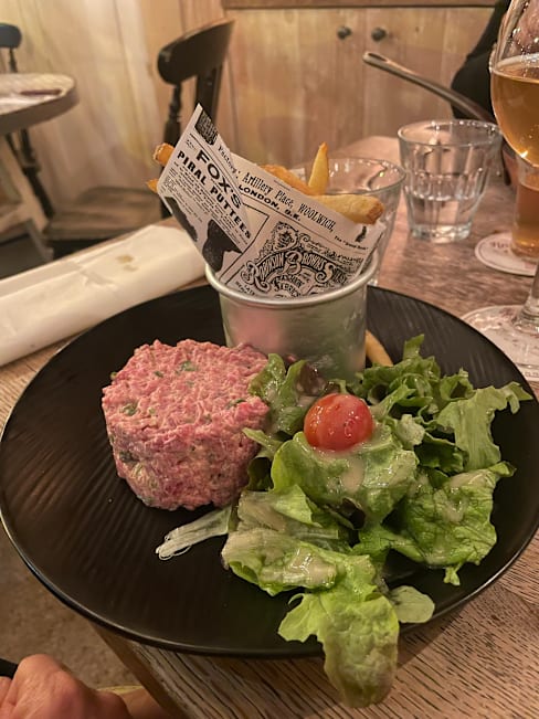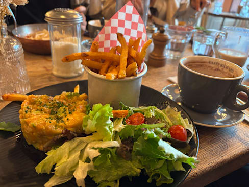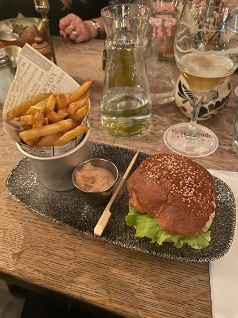 7.5/10The location is fantastic but unfortunately the food doesn’t stack up. For example, the burger came with just a burger bun - not toasted or anything. Incorrect meal was given but to our waiter’s credit, this was fixed as soon as we said something. Service was quite slow, there were two people and one did all the tables while another woman stood around so it was a bit of a weird vibe. Lastly, we were asked to give a tip when it came to paying (I live in Paris and while I know the tipping culture is increasing, this felt too much). Would not return.