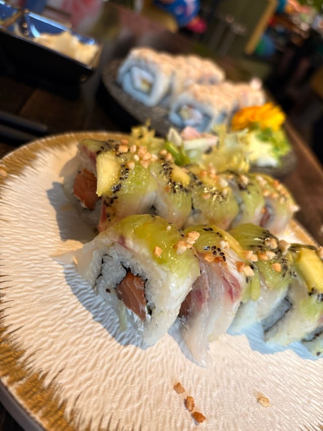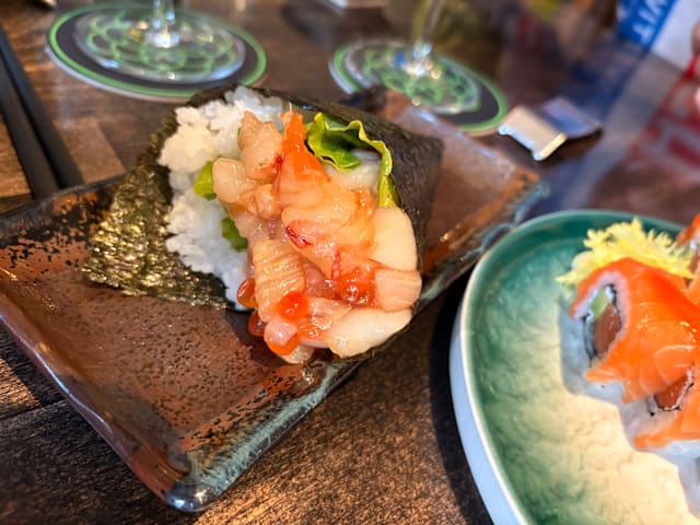1pz gambero di mazzara, capesante, salmone, lattuga, avocado ikura e maionese