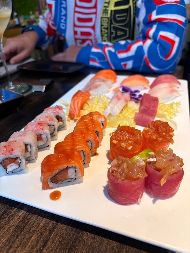 Riso con scampi*, gamberi*,gambero rosso di mazara*, salmone,tonno, branzino, ricciola, capesante salmone sockeye affumicato