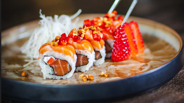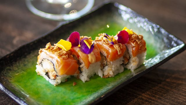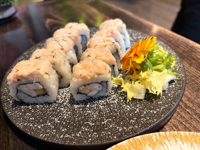 1 pz gamberi* in panko, salmone, robiola sesamo bianco