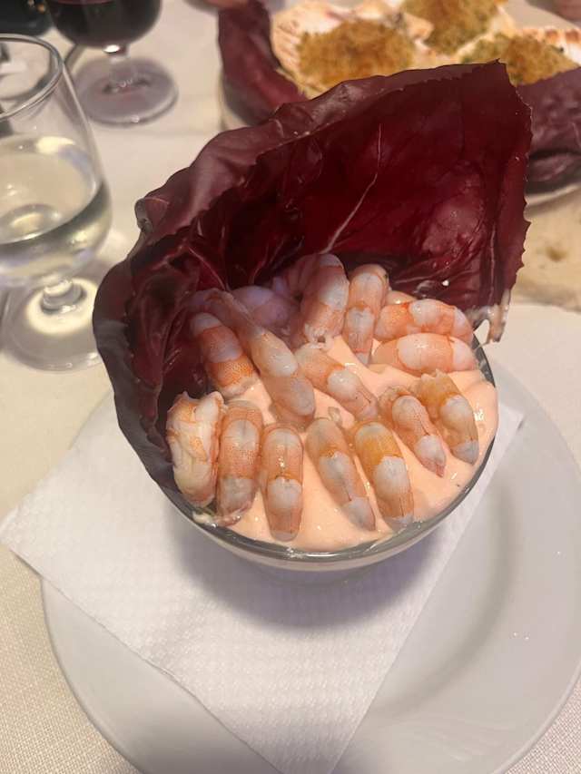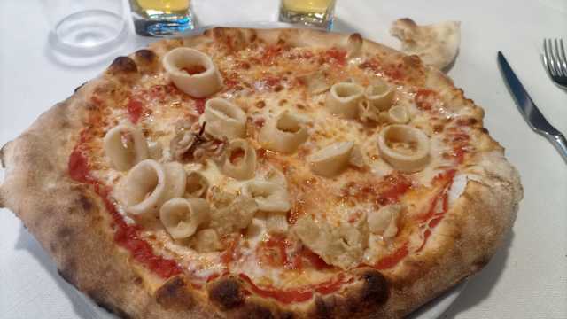 - Polipo con patate, polpa di granchio, rucola, gamberetti, cozze e vongole
