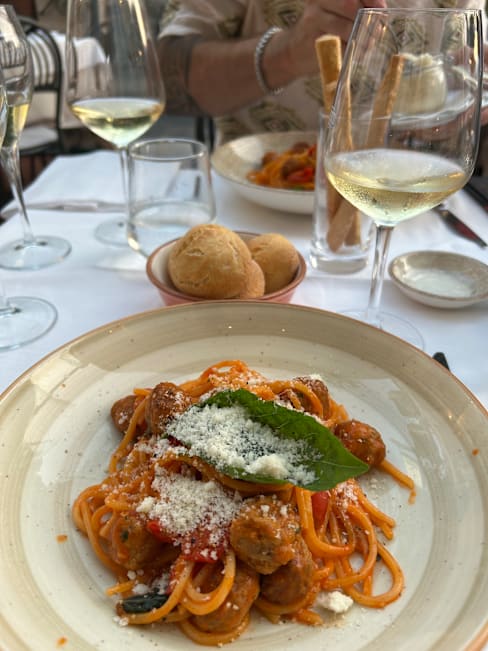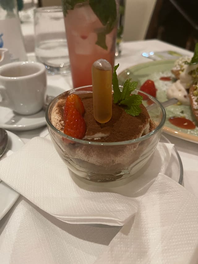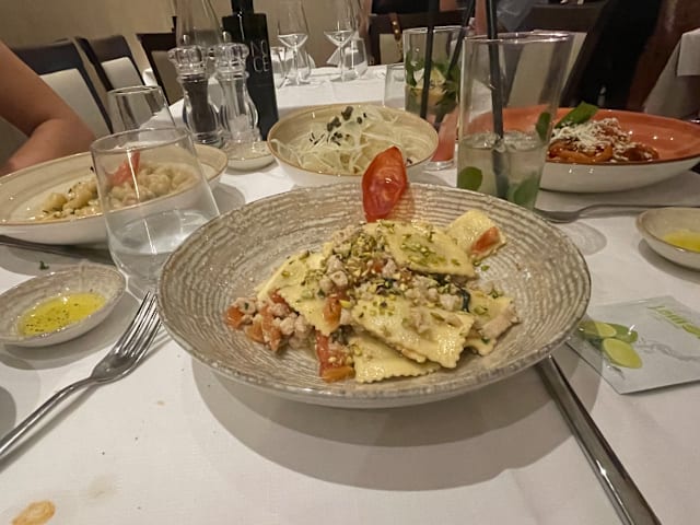 9/10+1The view, the area, the interior and exterior were all beautiful. Service was amazing. We started off with mussels, burrata and the daily special ricotta. All were amazing. We then got the Norma, gnocchi and ravioli, the 3 pastas were good, about 7.5-8/10. For dessert we got tiramisu, pane cotta and a cannoli. The cannoli was a little too sweet but the other two were amazing. The tiramisu had a little shot of liquor which you got to “inject” yourself. I only wish the pasta was a little better, other than that everything was fabulous.