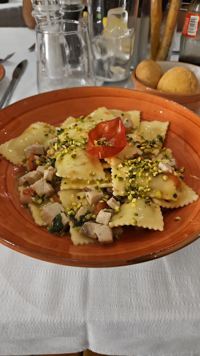 7/10Food courses where rushed straight after each other with no gap and when I requested that this not what I wished I was informed I should have told the staff?? This is not hospitable and never been made to rush the courses in any restaurant in Italy/Sicily! Calamari was over done and tough although the waiter was happy to change.