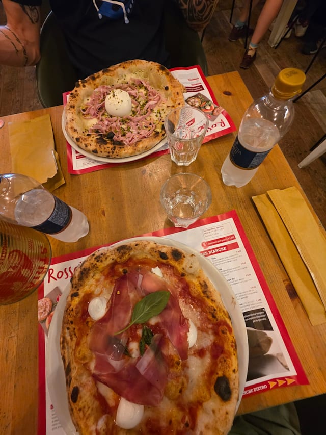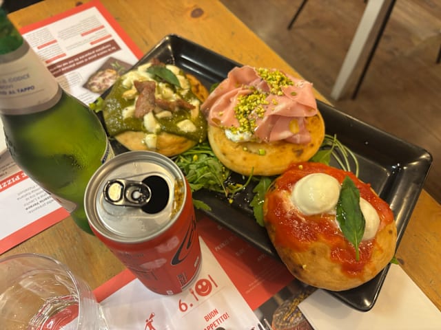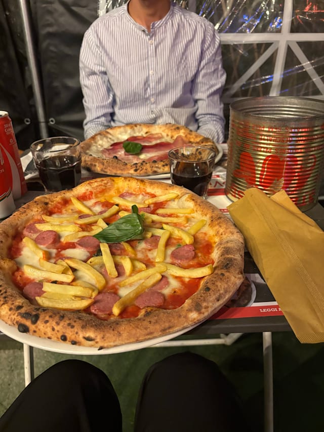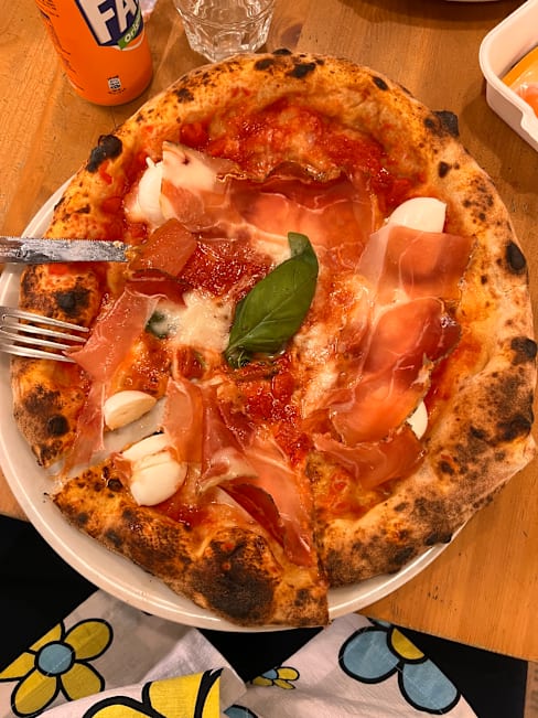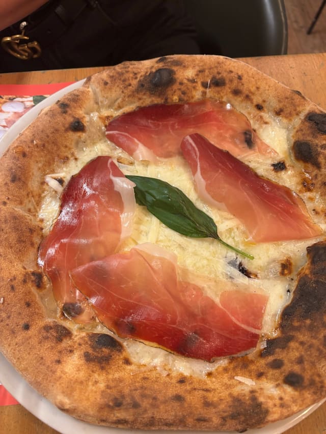 9/10The pizza here is absolutely magnificent! 🤩 Awesome dough, so very very very flavorful, and cooked to perfection. The setting is unique as well, since you are seated right inside a cozy shop filled with wine, meats, and cheeses, which creates a fantastic ambience. The staff is very friendly, and the whole experience is fun. You book a table, then order food and drinks at the touchscreen by the entrance using your table number. When your order is ready, they call out your table number (in English if you ordered in English), and you pick it up directly from the kitchen window. It is simple, quick, and works perfectly. If you are anywhere nearby, do yourself a favor and eat here. You will not regret it. 10/10, highly recommended! 🍕🍷