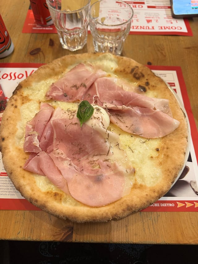 The pizza here is absolutely magnificent! 🤩 Awesome dough, so very very very flavorful, and cooked to perfection. The setting is unique as well, since you are seated right inside a cozy shop filled with wine, meats, and cheeses, which creates a fantastic ambience. The staff is very friendly, and the whole experience is fun. You book a table, then order food and drinks at the touchscreen by the entrance using your table number. When your order is ready, they call out your table number (in English if you ordered in English), and you pick it up directly from the kitchen window. It is simple, quick, and works perfectly. If you are anywhere nearby, do yourself a favor and eat here. You will not regret it. 10/10, highly recommended! 🍕🍷