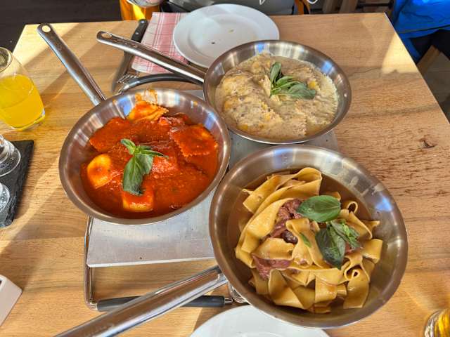 10/10One of our favorite on-mountain meals – beautiful, clean and new building (great bathrooms!) with wonderful pizza and salads. Everything on the menu looked inviting, so we'll look forward to trying something else on another visit. We came on a snowy day, so missed the no-doubt gorgeous views. Easy access for skiers and non-skiers alike via the gondolas and tram up from Sunnega. Worth a visit!