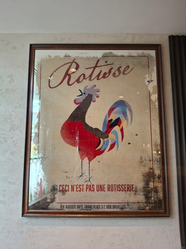 5/10Rotisse is made largely for business people, and a lot of people will be glad to hear that. It’s clean, quiet, and friendly. For me, however, if I’m eating in Brussels, I want to *know* I’m in Brussels. If you had dropped me here and told me I was in Springfield, Illinois, I would’ve believed you. The menu is composed of crowd-pleasers — nothing to insult anyone, nothing wrong with anything, and we walked away shrugging our shoulders.