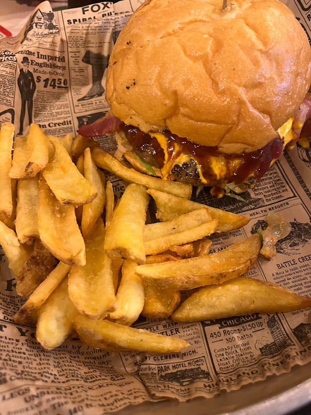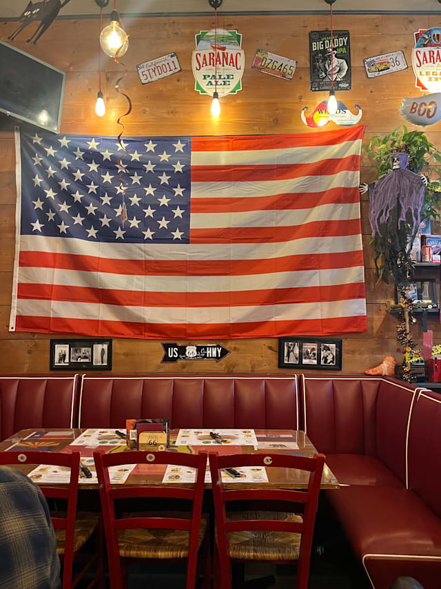 8.5/10The Classic Double Cheeseburger with Bacon was massive. The meat is definitely fresh, not frozen. The french fries were great too. The ambiance is if as stuck in a tacky Hollywood-ish representation of an American 1950s-era small midwestern town diner. It’s kitschy, but not offensive. I really enjoyed the 1980s MTV videos on the big screen tv. As a proud member of Generation X, seeing original videos of Queen, Tears for Fears, Cyndi Lauper, Mister Mister, Peter Gabriel, and Talk Talk made me heart have a gigantic smile on it. Call it internalized joy. I’m 1/2 Italian but grew up in Nebraska and Texas. The steak menu and grill menu looked impressive and that would be a reason for me to return for a big hunk of meat, beef brisket, bbq ribs, or pulled pork. Very relaxed atmosphere, great music, good food, friendly service.